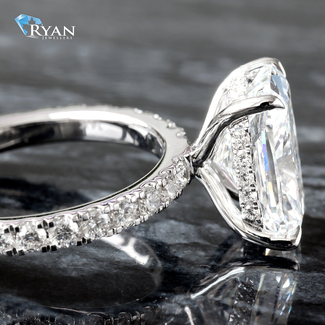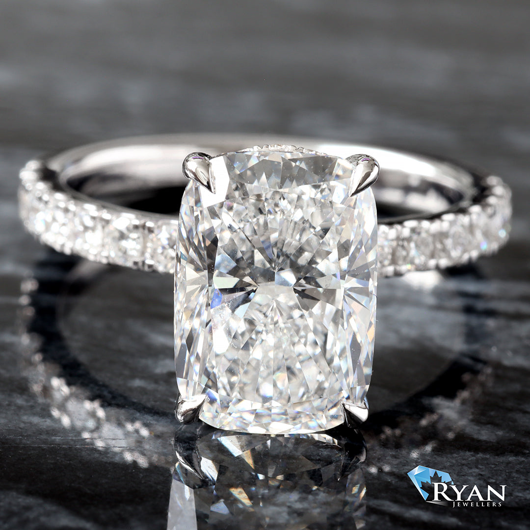 4.52CTW LAB Elongated Cushion Center With Pave Shoulders And Hidden Halo
