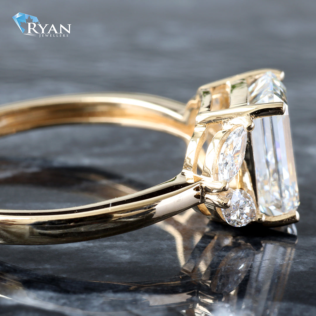 2.15CTW LAB Emerald Center With Marquise Accents And High Polish Shoulders