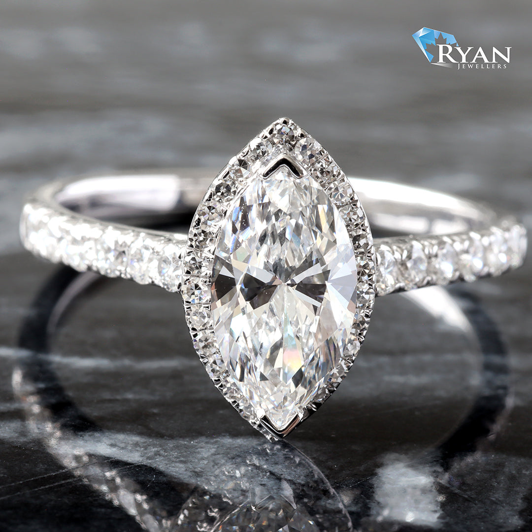 1.35CTW LAB Marquise Center With Cathedral Pave Shoulders & Halo