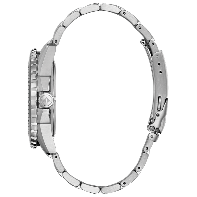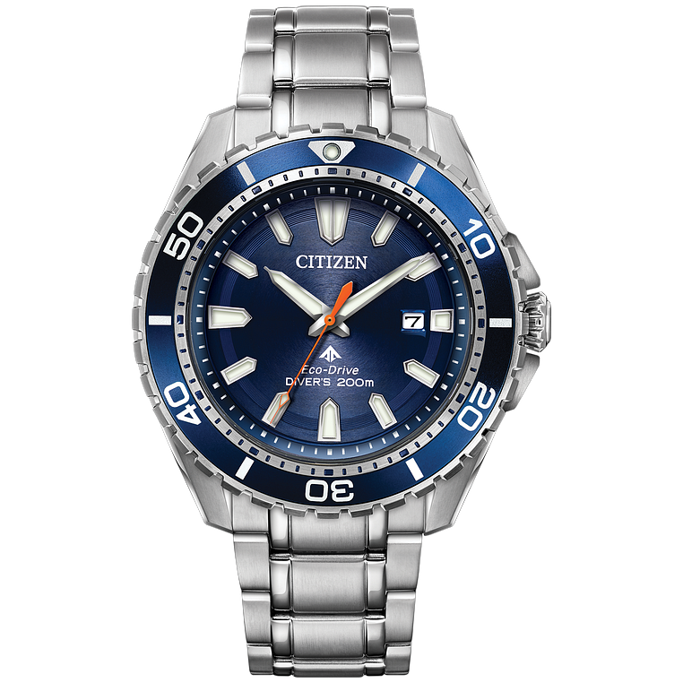 CITIZEN®'s PROMASTER Diver is the perfect ISO compliant timepiece for the bold seeking the thrill of a deep-sea challenge. Built with diving in mind, this timepiece is tough and durable. Shown in a stainless steel case and bracelet, the PROMASTER Diver features a one-way rotating elapsed-time bezel, a screw-back case and screw-down crown, and an anti-reflective crystal. Water resistant up to 200 metres.